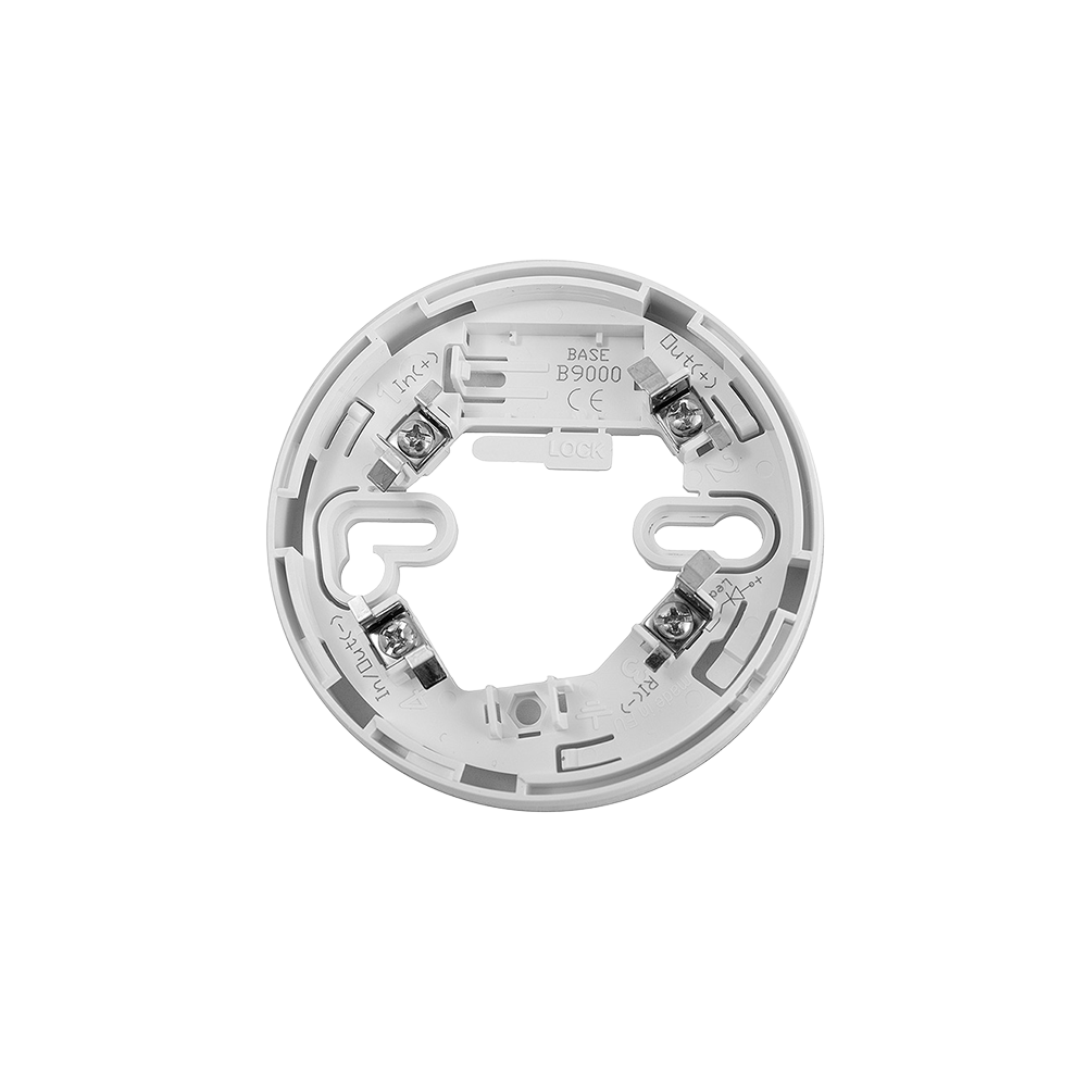 The B9000AS is a base with built-in sounder for D9000A series addressable fire detectors. It is used in bedrooms for