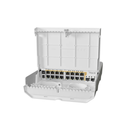 A rack-mounted 8-GbE, 2-SFP, Layer 2 PoE switch with a 130W power supply and a silent cooling system.
