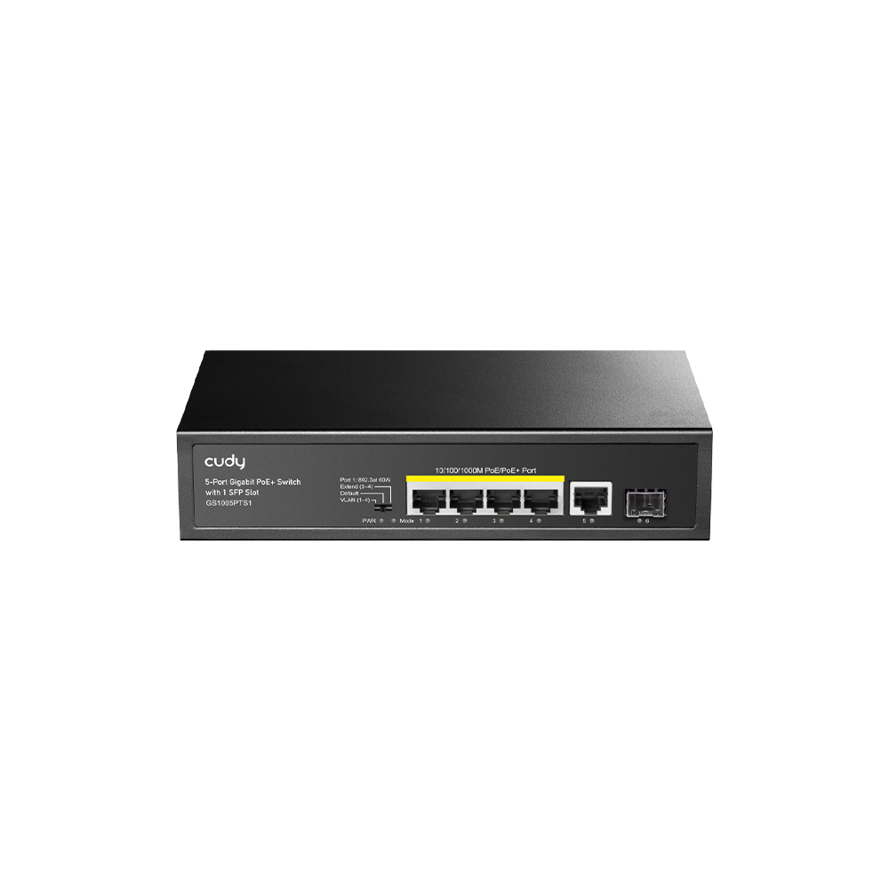 ● 4 Gigabit PoE ports and 1 Gigabit Ethernet ports 1Gigabit SFP