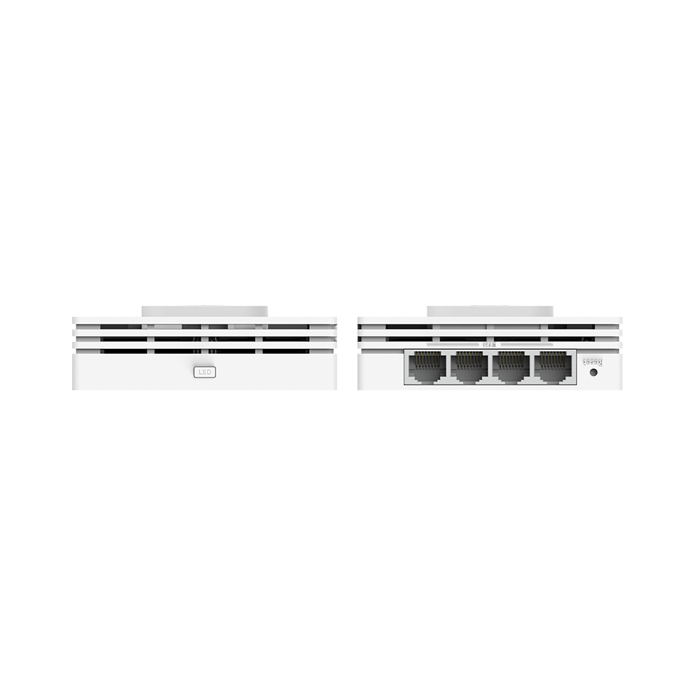An in-wall WiFi 6 AP with a built-in 5-GbE switch ideal for covering a room or ensuite in hospitality environments. One PoE output allows for connecting an IP phone or other PSE-enabled devices.