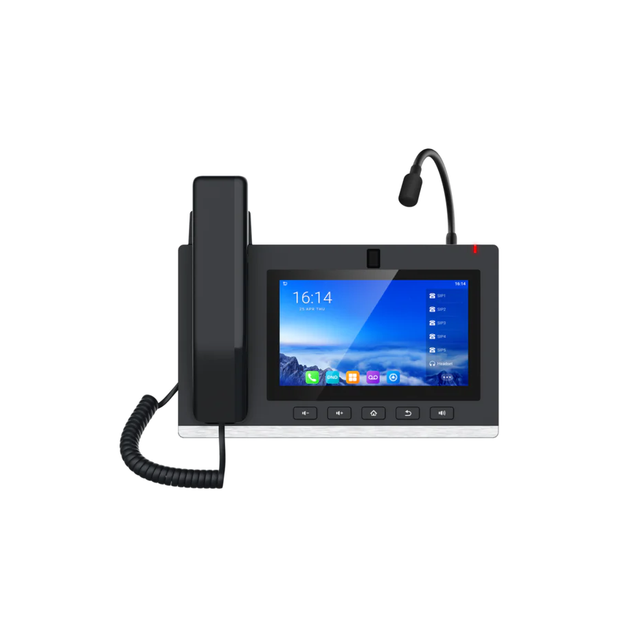 Fanvil A308i is an Android console IP phone that integrates audio and video applications. Running on Android 9.0, it supports third-party app installations. Featuring an intelligent speech algorithm and a gooseneck microphone, the A308i enables full-duplex voice calls with a maximum volume of 90dB. Its built-in 5 mega-pixel adjustable camera offers high-definition audio and video calling. Additionally, the A308i is equipped with a versatile bracket for both desktop and wall-mounted installations, accommodating various setup requirements.