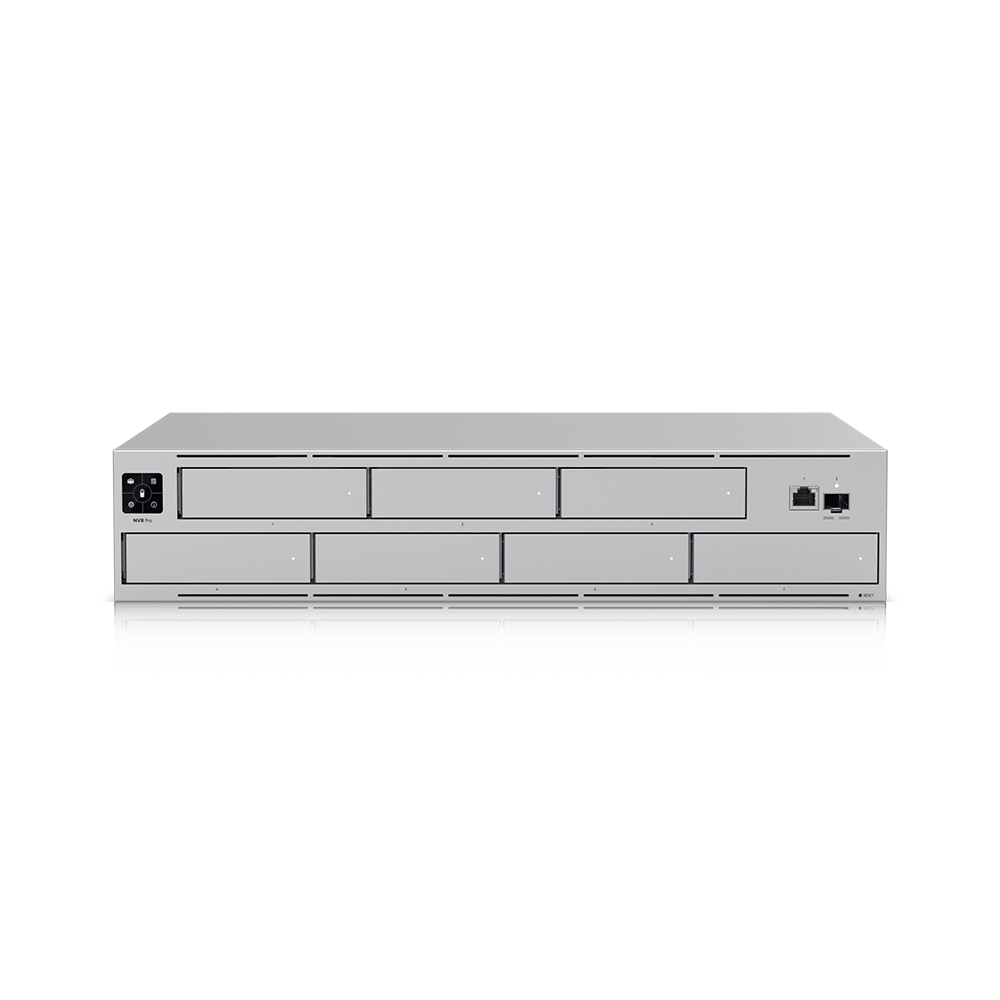 A 2U-sized video recorder with (7) 2.5/3.5″ HDD bays that can provide up to 60 days of storage for (24) 4K cameras or (70) Full HD cameras.