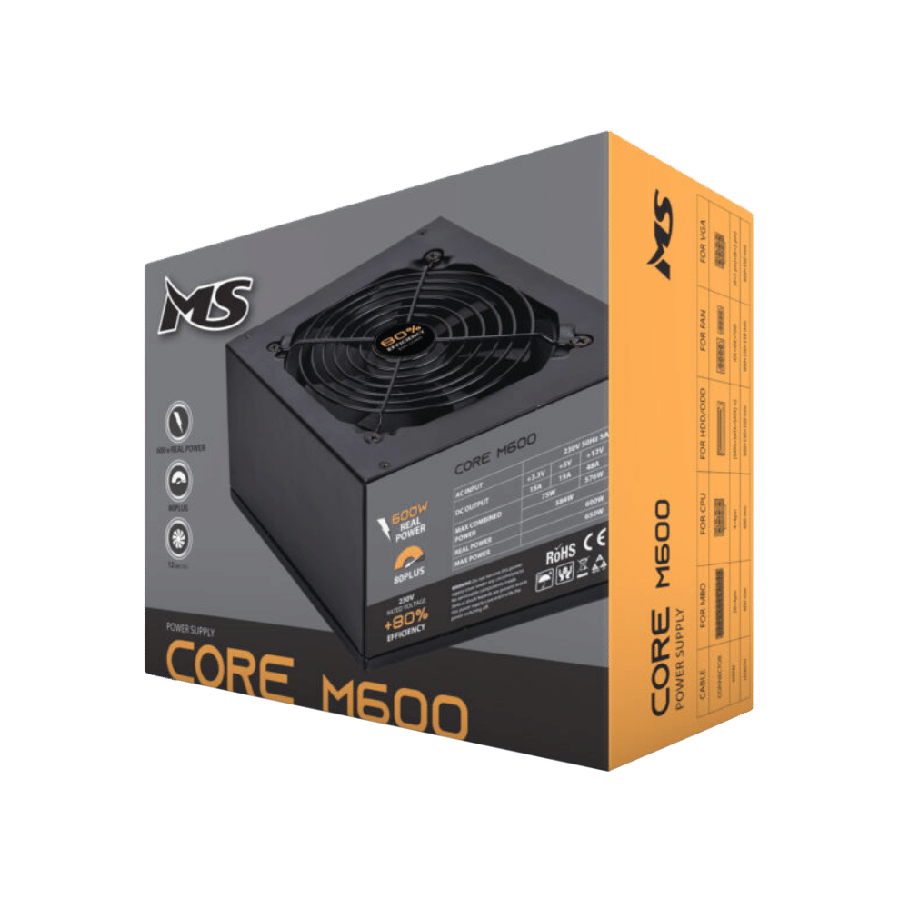 Game lovers surely know that playing games takes a lot of computer power. The MS CORE M600 power supply is an efficient and reliable solution for your gaming computer that will supply all components with the necessary current. It provides 600 W of power and comes with a nearly silent 12 cm fan.