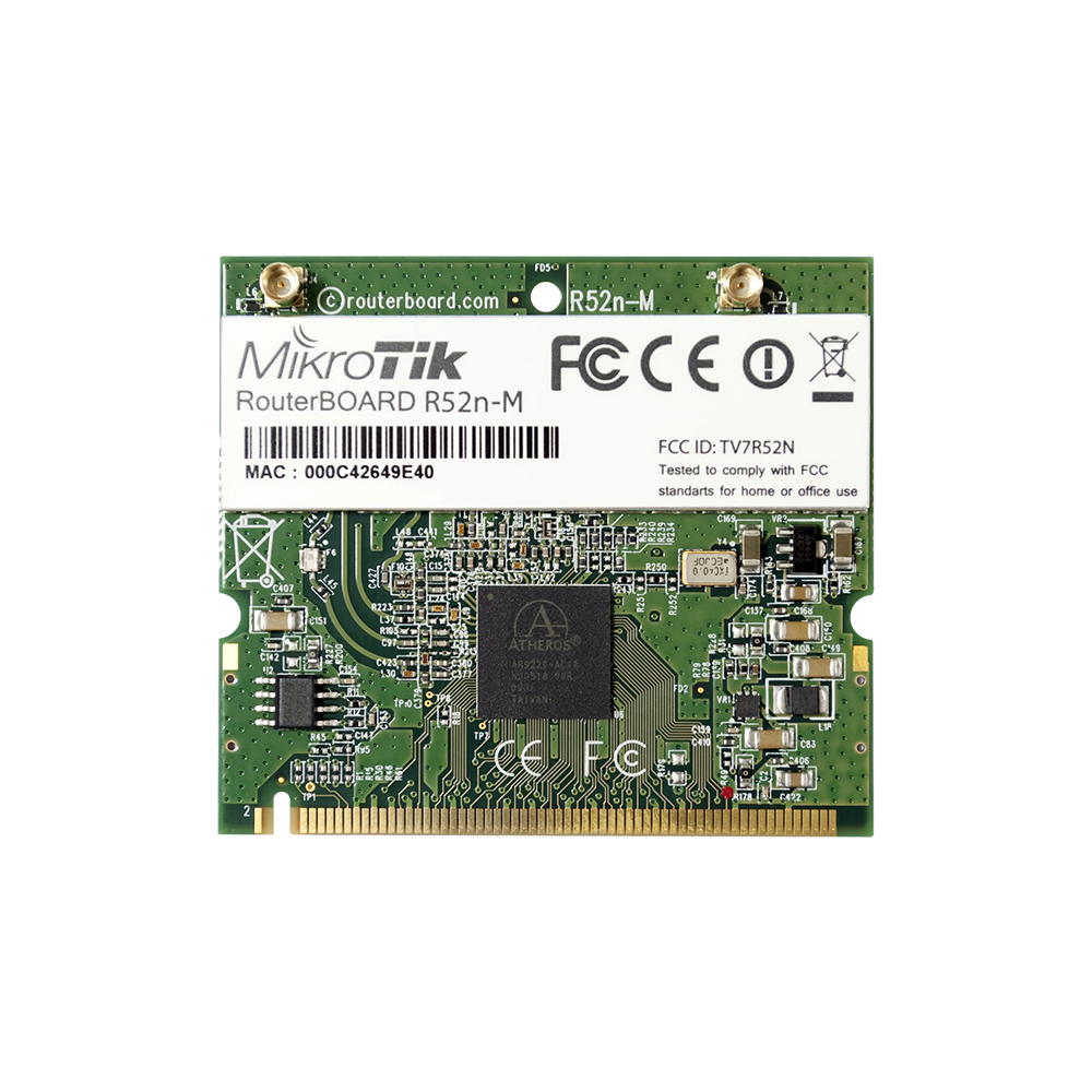 The RouterBOARD R52n-M miniPCI network adapter provides leading 802.11a/b/g/n performance in both 2GHz and 5GHz bands, supporting up to 300Mbps physical data rates and up to 200Mbps of actual user throughput on both the uplink and downlink. This card features the sturdy MMCX connectors for higher durability. Adding Wireless N to your Wireless device, it provides higher efficiency for everyday activities such as local network file transfers, Internet browsing, and media streaming.