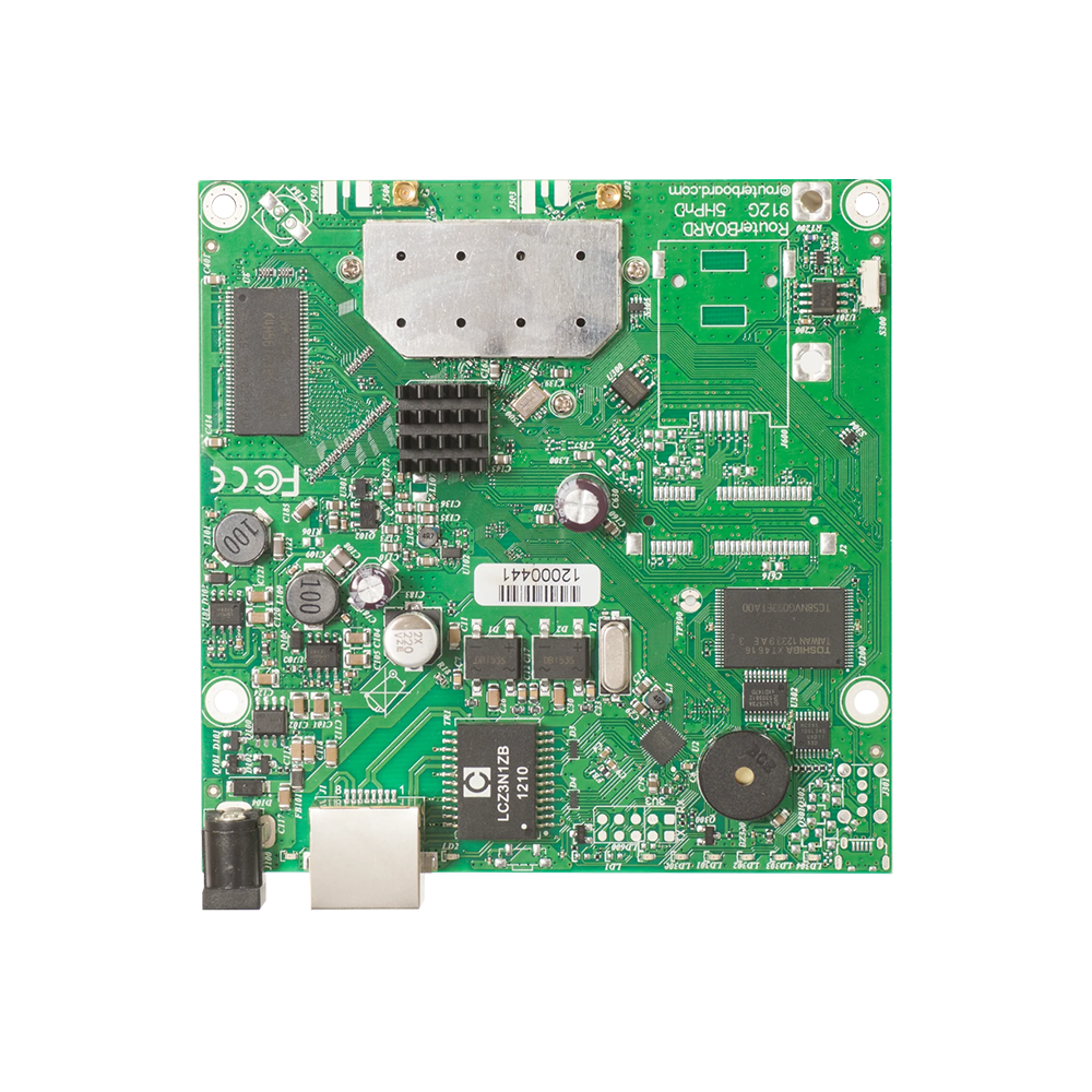 RouterBOARD 911G with 600Mhz Atheros CPU, 64MB RAM, 1xGigabit LAN, built-in 5Ghz 802.11a/n 2×2 two chainwireless, 2xMMCX connectors, RouterOS L3