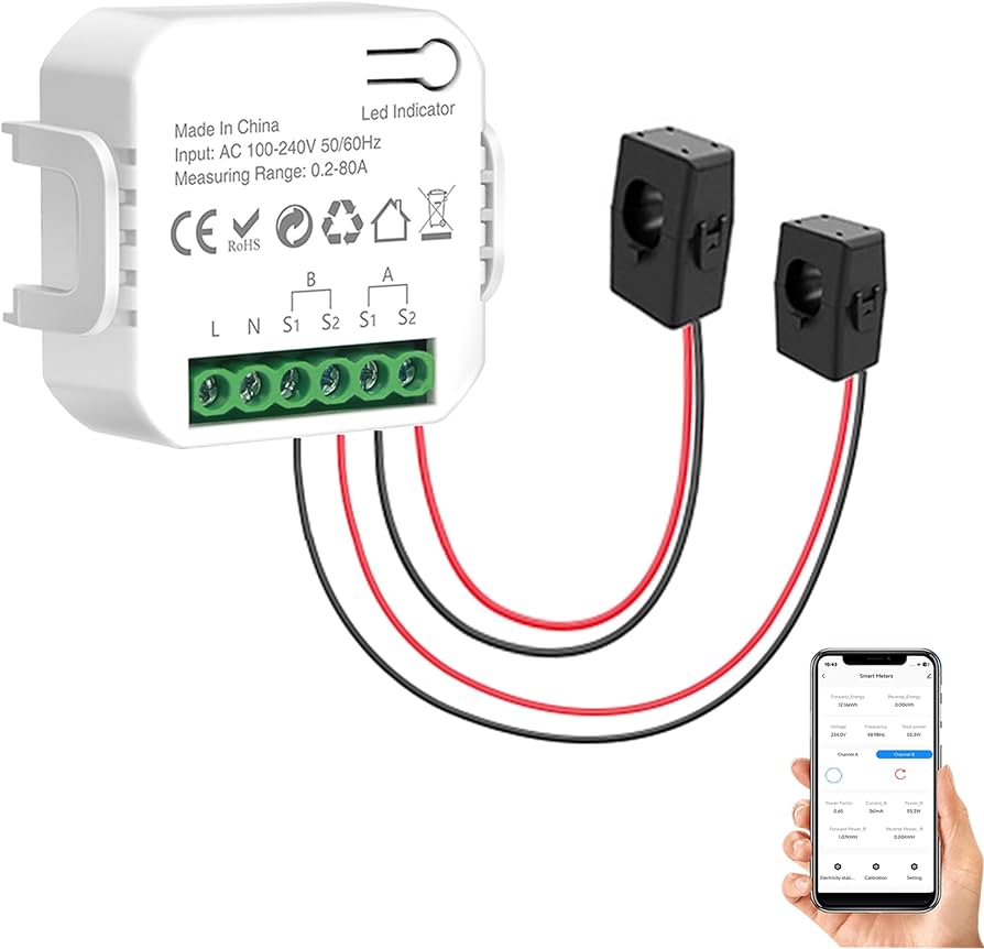 Smart Energy Monitor, Bilateral Energy Meter, with 2PCS 80A CT Current Transformers Clamps,