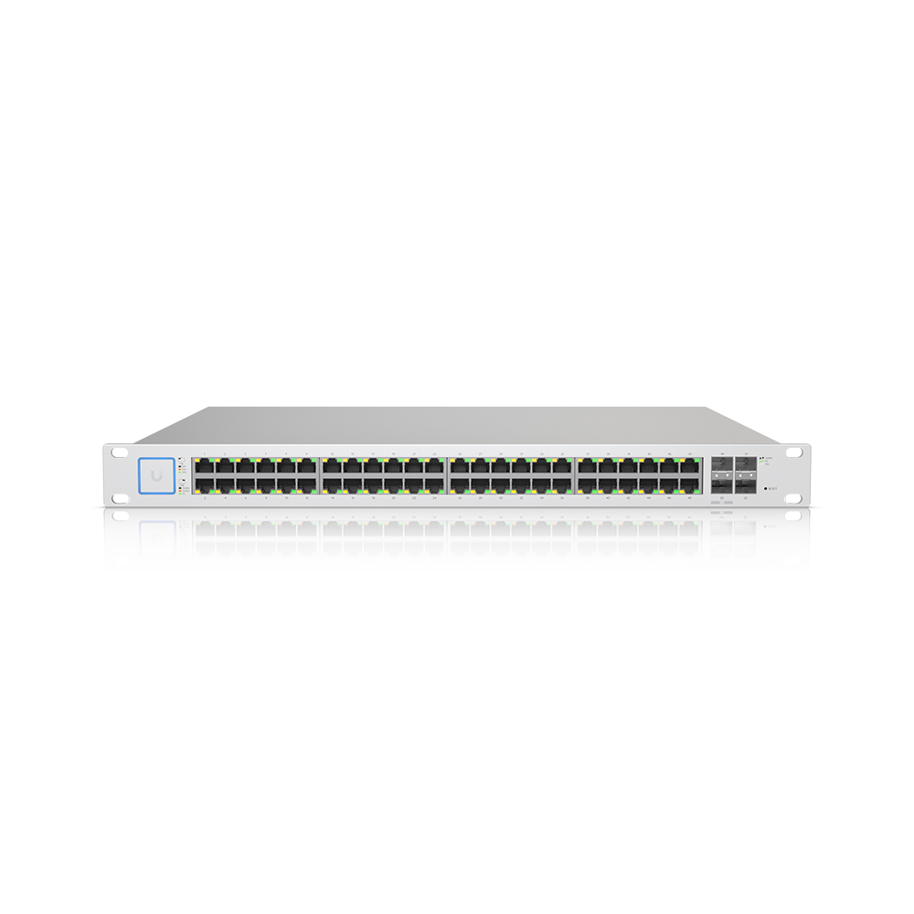 Layer 2, PoE switch with (48) GbE, PoE+ and 24V passive PoE RJ45 ports, (2) 1G SFP ports, and (2) 10G SFP+ ports.