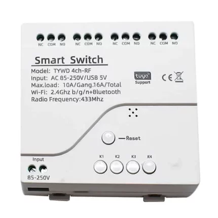 Tuya Wifi+RF 433 4 CH Smart inching Relay, 10A
