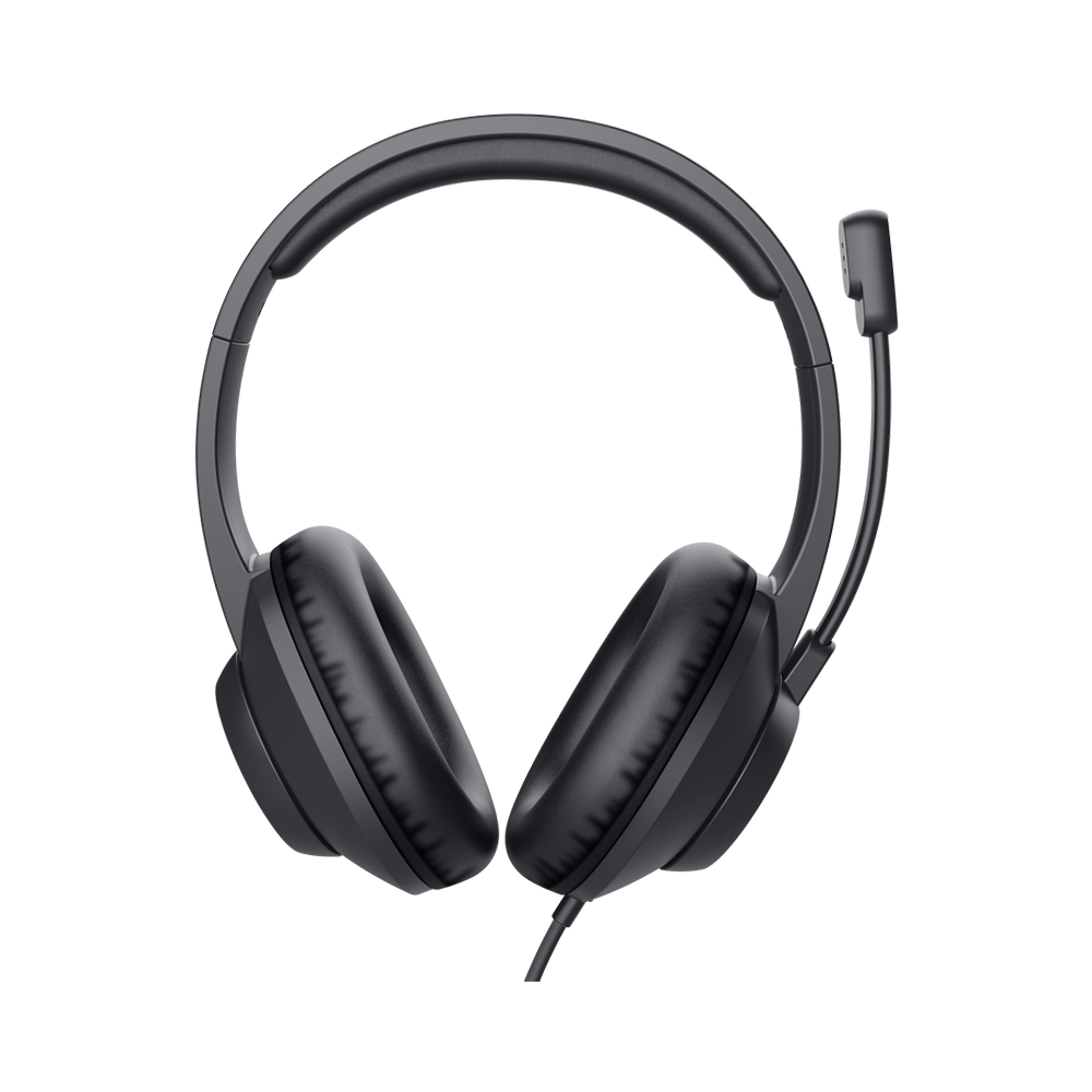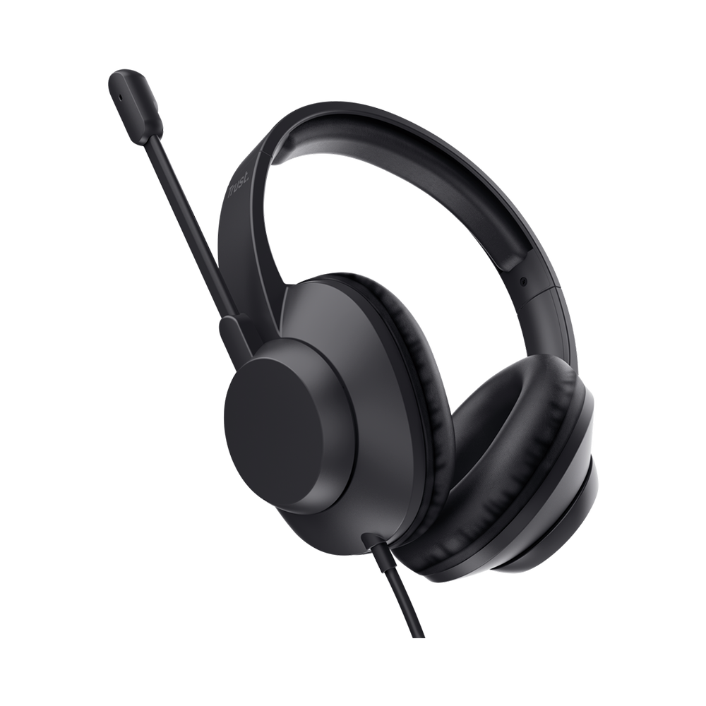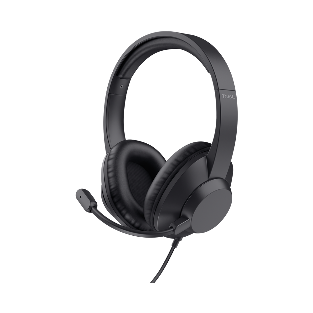 Kufje Trust Ayda Max me USB për PC, me mikrofon me ENC për anulim të zhurmës, shirit mbajtës të mbushur, kabllo 1.8 m, 85% plastikë të ricikluar, kufje të lidhura me USB-C me mikrofon për laptop, kompjuter Mac dhe Teams, ngjyrë e zezë.