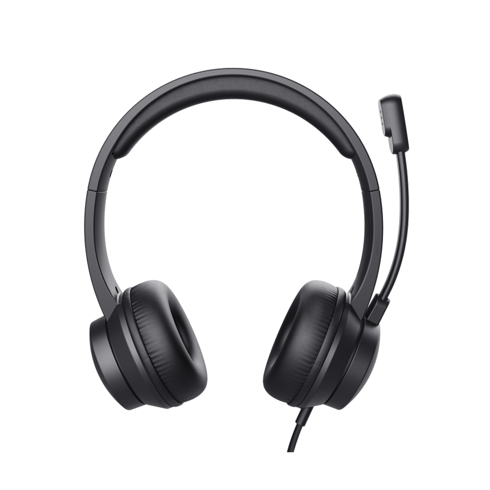 Lightweight on-ear USB PC headset with soft ear cushions and adjustable headband