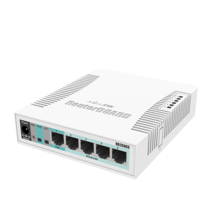 Cloud Router Switch 326-24G-2S RM with 800 MHz CPU, 512MB RAM, 24xGigabit LAN, 2xSFP cages, RouterOS L5 or SwitchOS (dual boot), 1U rackmount case, PSU